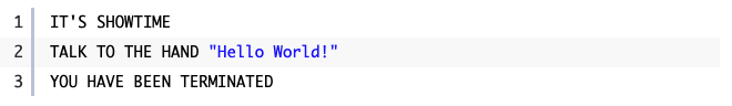 ArnoldC is a programming language consisting exclusively of (get this) one-liners from movies starring Arnold Schwarzenegger — especially classics such as Terminator, Predator and Total Recall. ArnoldC was created by Lauri Hartikka, who started by swapping out standard commands for an equivalent Arnold one-liner. For example, the standard commands “False” and “True” become “I LIED” and “NO PROBLEMO”, and “Return” becomes “I’LL BE BACK” Here’s what the (frankly hilarious) "Hello World!" code looks like.