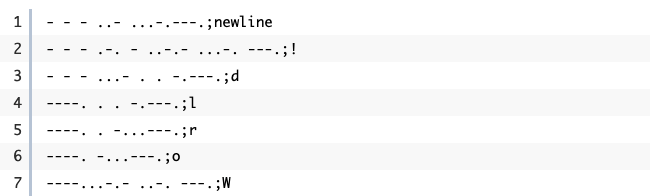 Developed by Ryan Kusnery, ReMorse is a programming language that was made to look like Morse code. There are only four instructions: dot (.), dotty (. followed by a space), dash (-) and dasher (- followed by a space).