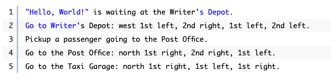 Taxi is a coding language that looks like directions on a roadmap, replacing traditional coding elements like varialbes, classes, and functions with places, cities, and directions.